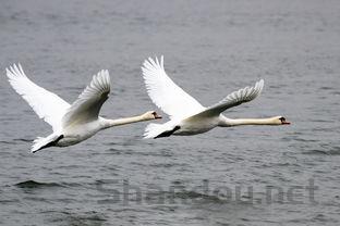 雪雁双性同形同色,体羽纯白,头和颈有时不同程度的染有锈色,初级飞羽黑色,羽基淡黑色,初级覆羽灰色,翼翅尖黑色,腿和嘴粉红色,嘴裂黑色。雪雁身披洁白的羽毛,黑色的翼尖点缀其中,相映成趣,显示出瑰丽多姿。雪雁有迁徙的习性,迁飞距离也较远。喜群居,飞行时成有序的队列,有一字形、人字形等。7、天鹅
